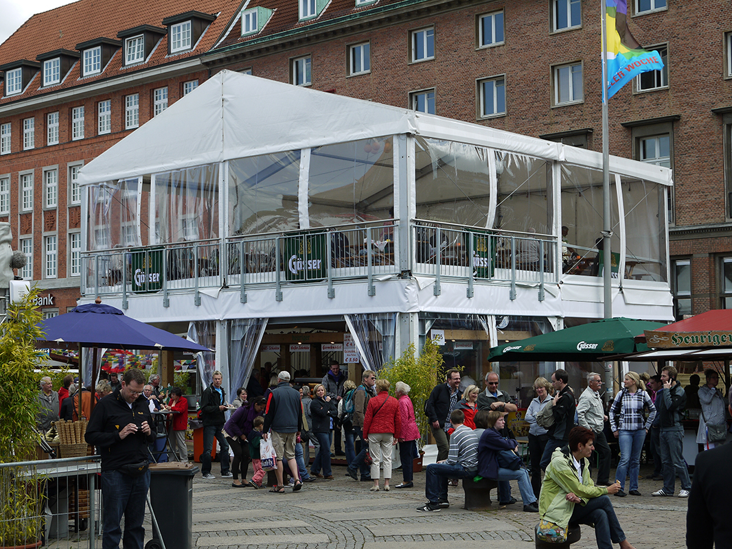 Ein ganz besonderes Zeltsystem für besondere Events. Der Clou: 2 Veranstaltungsebenen und im ersten Stock eine riesige überdachte Dachterasse.