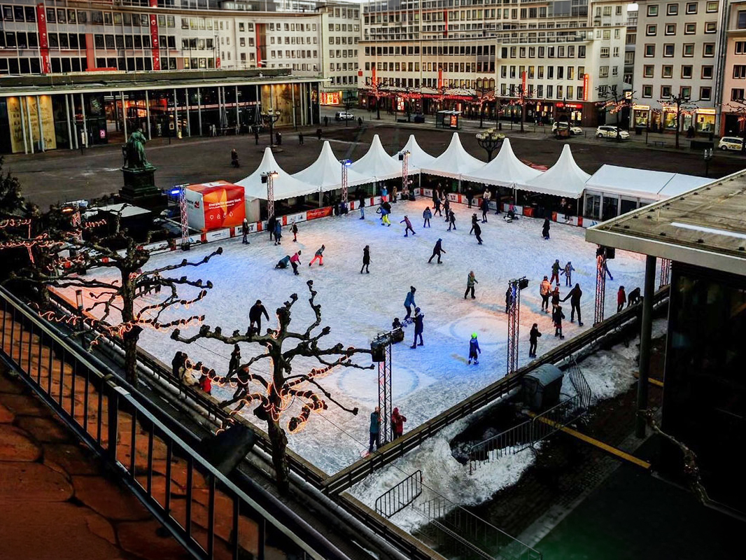 Die größte mobile Eisbahn Deutschlands verwandelt mit beeindruckenden Eisflächen von über 3.000 Quadratmetern ganze Plätze in ein winterliches Erlebnis für Besucher jeden Alters.